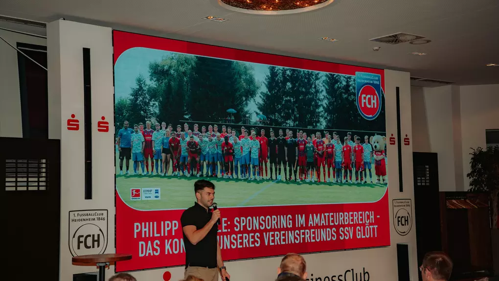 Einen praxisnahen Einblick in das Sponsoring im Amateurbereich gab Philipp Strehle von der SSV Glött. Der ehemalige FCH Vertriebsmitarbeiter stellte anhand seines Heimatvereins verschiedene Sponsoring-Pakete vor und erläuterte, wie ein durchdachtes Konzept auch im Amateurfußball erfolgreich umgesetzt werden kann.
