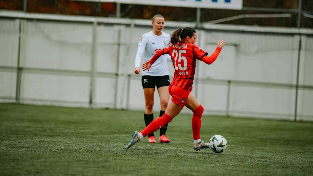 Von Beginn an war zu sehen, dass der FCH dem Favoriten ein unangenehmer Gegner sein wollte. Mit viel Einsatz, hohem Tempo und einer konsequenten Zweikampfführung gelang es, die körperliche Spielweise der Gäste anzunehmen und selbst spielerisch zu überzeugen. Hegnach agierte sehr defensiv und versuchte vor allem mit langen Bällen auf ihre schnellen Offensivspielerinnen gefährlich zu werden – doch die FCH Defensive stand stabil und ließ kaum etwas zu. Stattdessen erspielten sich die Heidenheimerinnen ein deutliches Chancenübergewicht. Die größte Möglichkeit der ersten Hälfte hatte Antonia Di Muro in der 35. Minute: Nach einem starken Ball in die Tiefe legte sie quer, doch gleich zwei FCH Spielerinnen scheiterten an der reaktionsstarken Gästetorhüterin.