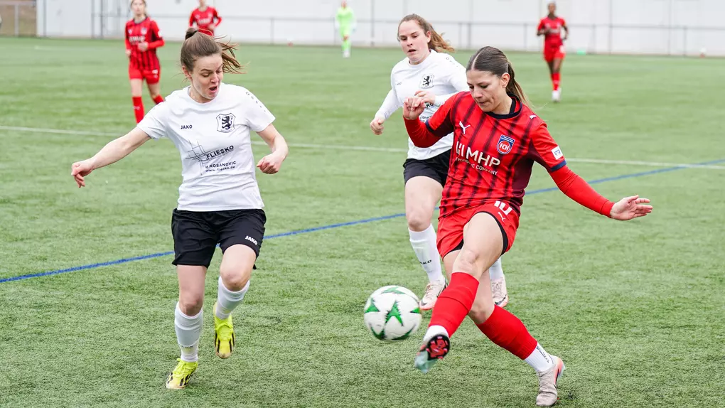 In der Folge fanden die Rot-Blau-Weißen immer besser ins Spiel. Bereits in der 8. Minute war es Josephine Wild, die nach einem langen Ball die Nerven behielt und zur frühen 1:0-Führung einschob. In der anschließenden Phase dominierte der FCH die Partie, agierte jedoch bei den letzten Pässen und im Abschluss häufig noch zu ungenau.